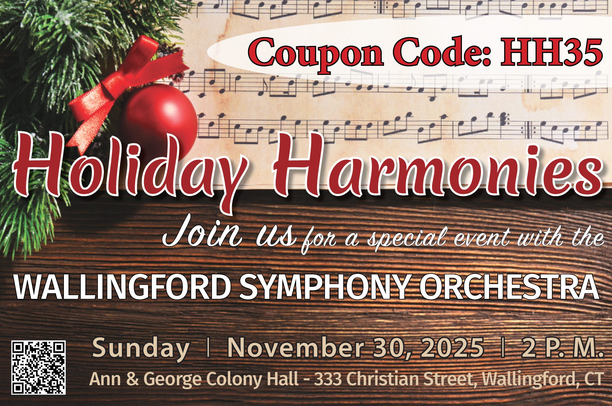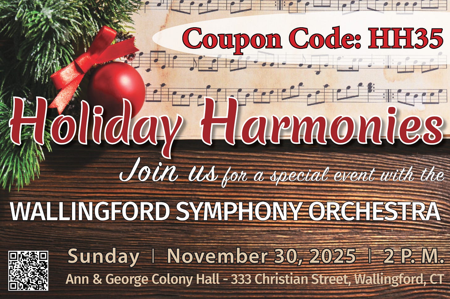 Wallingford Symphony: Holiday Harmonies (35% Off!) — Enjoy holiday favorites including Christmas at the Movies, It’s Christmastime, and Festive Sounds of Hanukkah, featuring baritone Miguel Ángel Vásquez. Use code HH35 for 35% off tickets.
